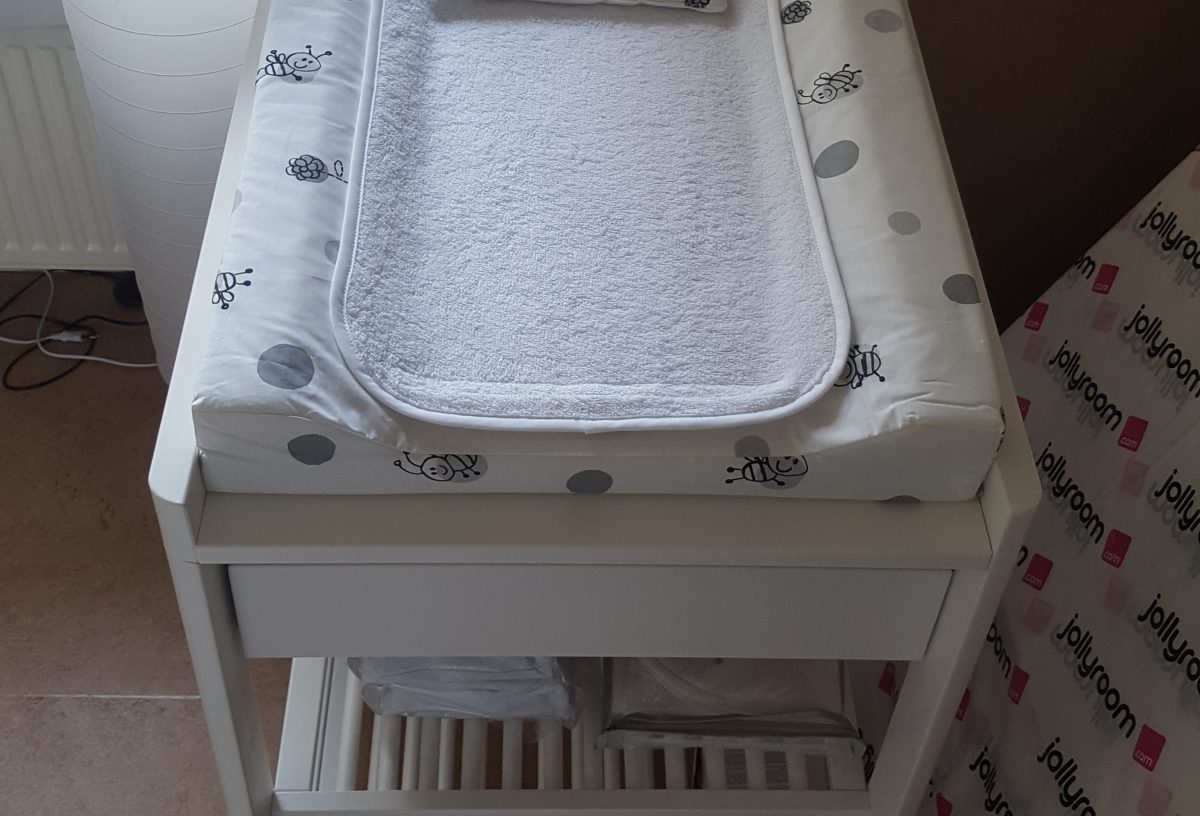 Skötbord Vid vårt val av skötbord har vi gått på såväl praktiskt/funktionellt som estetiskt tilltalande. Vi ville ha ett skötbord med mycket förvaringsutrymme, så att vi kan förvara allt från blöjor och våtservetter till badbalja (då vårt badrum är trångt). Samt att vi gärna ville ha en ”låda” till småsaker så som salvor, termometer, soppåsar och annat smått som ska …